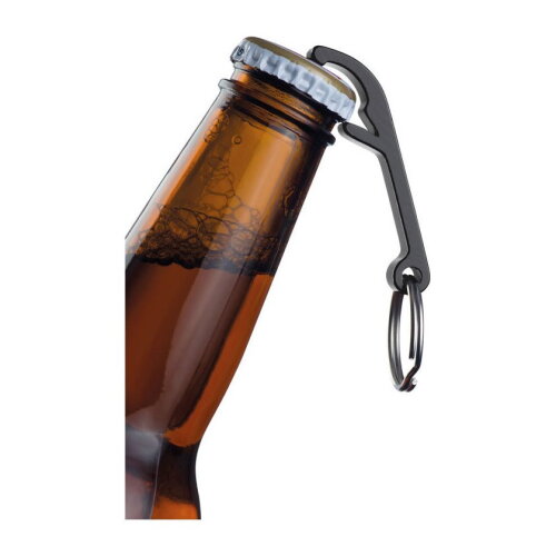 Een flesopener als sleutelhanger. Perfect om aan sleutels te bevestigen. Het logo brengen wij aan door middel van een lasergravure op de flesopener.