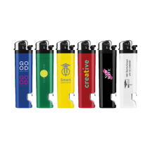 Laat aanstekers met opener bedrukken met uw logo. Dit kan op verschillende manieren. U kunt de aansteker met opener bedrukken op één zijde, of op beide zijden. De goedkoopste manier om onze aanstekers met opener te bedrukken is door de aansteker met 1 kleur te bedrukken. Desgewenst kan de aansteker met opener ook in full color bedrukt worden. U heeft dus een vrije keuze om uw aansteker met opener geheel naar wens te bedrukken met uw logo.