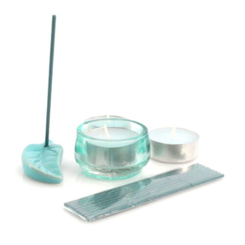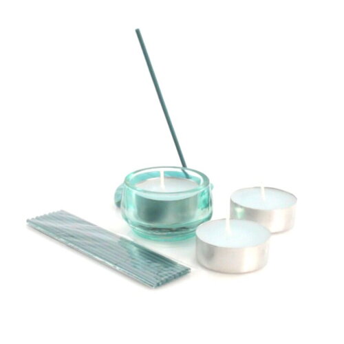 Set van kaarsen en wierook in verschillende kleuren. Inclusief keramische brander, wierookstokjes, 3 geurkaarsen en kaarshouder. Verkrijgbaar in aardbei- en oceaangeuren. Gepresenteerd in een individueel doosje met afzonderlijke compartimenten en transparant deksel.