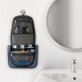 600D make-up tas met hoge dichtheid. Het hoofdvak heeft een tweewegrits en 210D voering. Het bevat verschillende binnenvakken en een haak aan de bovenkant om op te hangen.